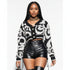 Revamp your wardrobe with this stylish cropped cardigan. Its V-neck design and graffiti print add a touch of modern flair to any outfit. And with long sleeves and a button down knit, it will keep you warm and comfortable all day long. A must-have for those looking to elevate their fashion game.