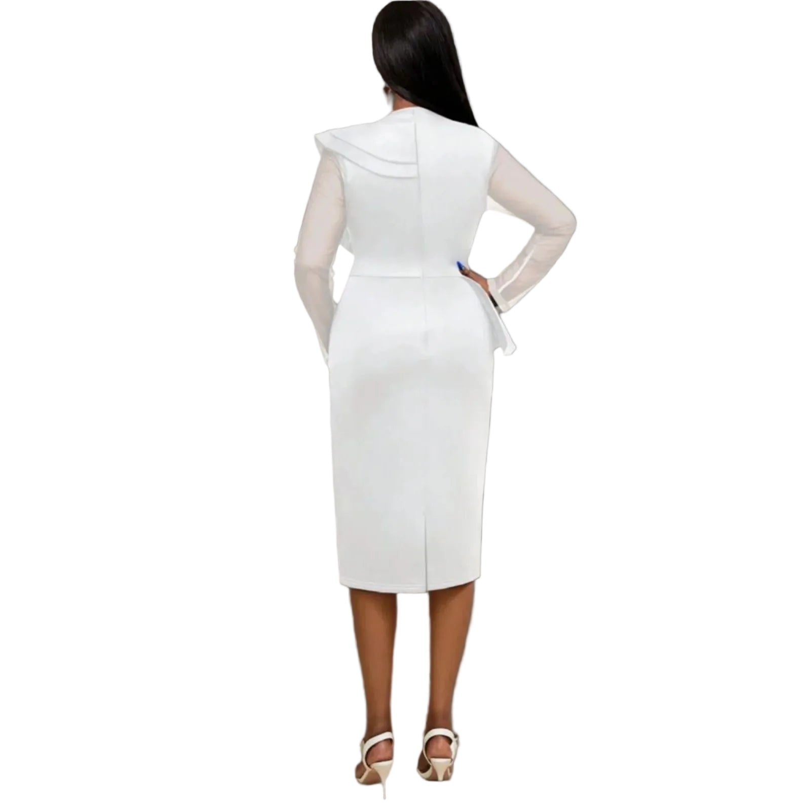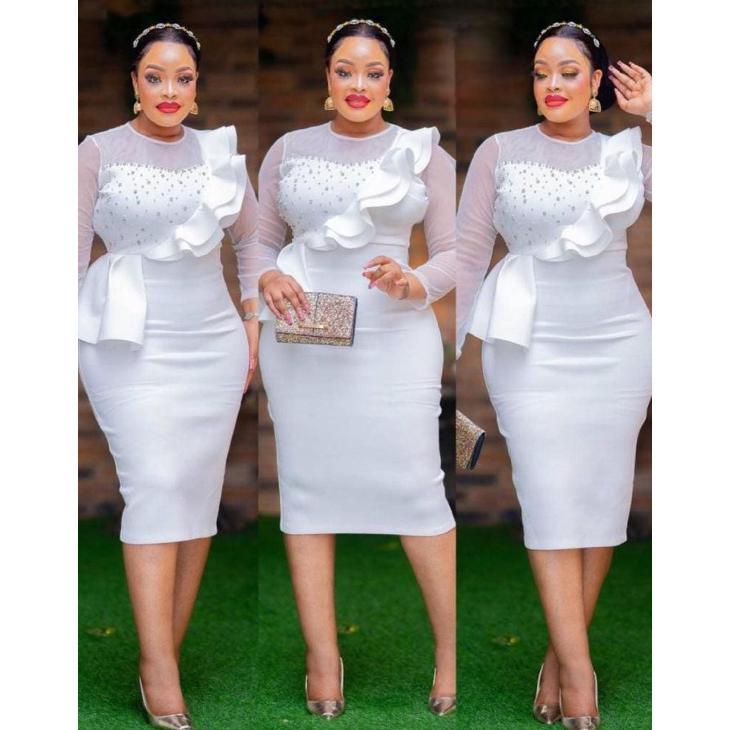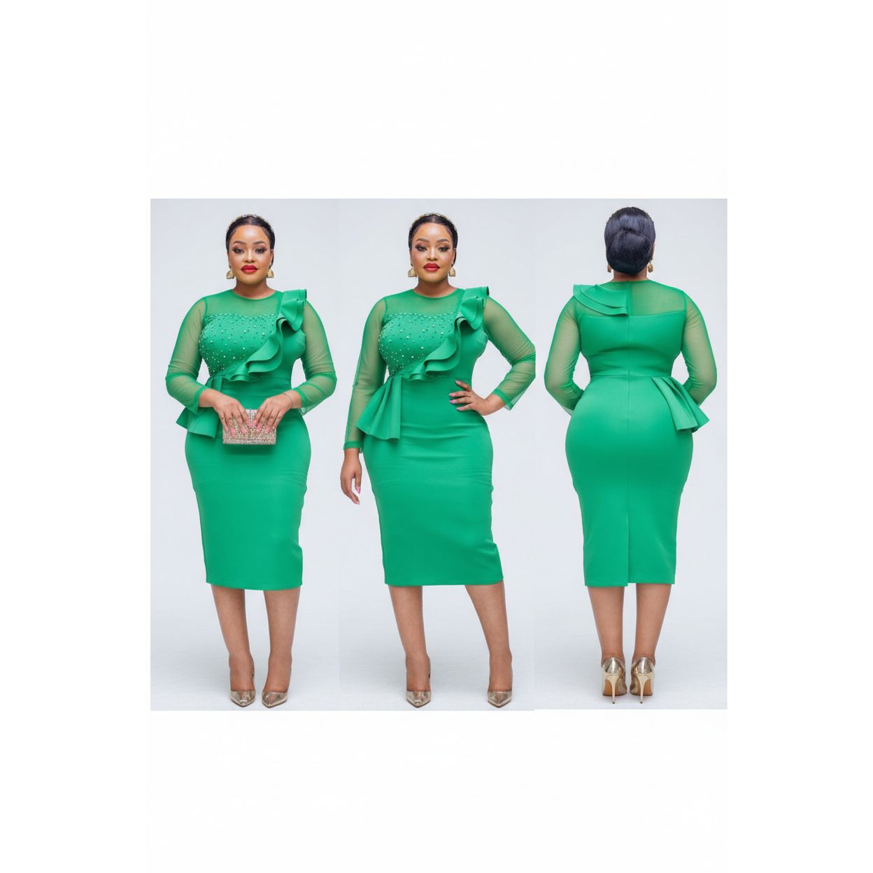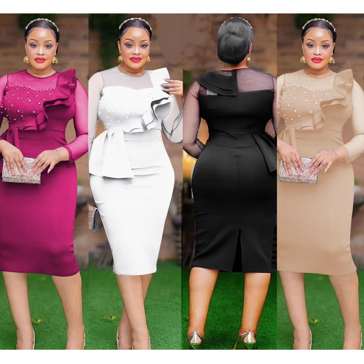 Elegant Mesh Patchwork Ruffled Beaded Bodycon Dress This dress is designed with intricate mesh patchwork and delicate ruffles, adorned with elegant beads for a sophisticated look. The bodycon silhouette flatters your figure while the high-quality material ensures lasting style and comfort. It's a versatile piece that will elevate your wardrobe and make you feel confident for any occasion.