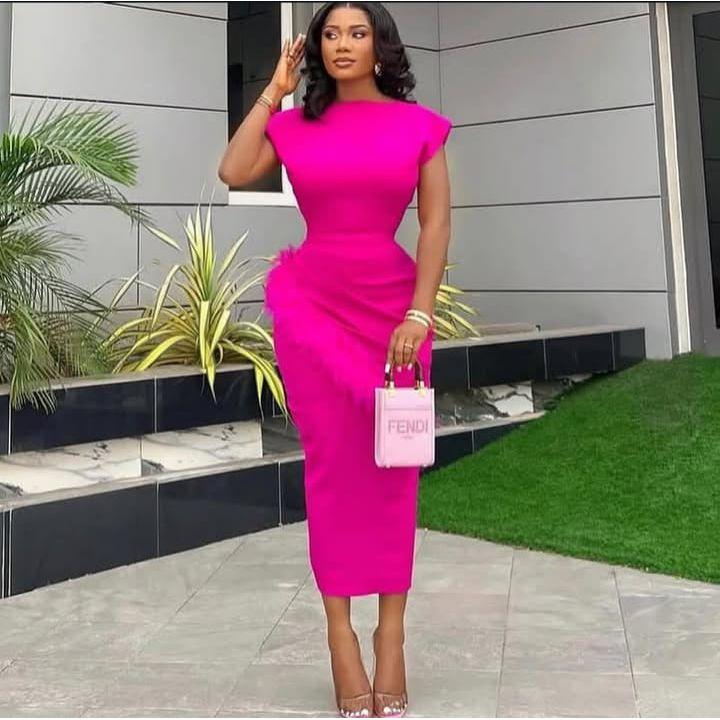 This dress is crafted with a slim fit design, allowing for a flattering and elegant silhouette. The feather patchwork adds a unique and stylish touch, making it a versatile piece that can be worn for various occasions. Its O-neck design also offers a classic and timeless look. With this dress, you'll feel confident and fashionable while showcasing your personal style.