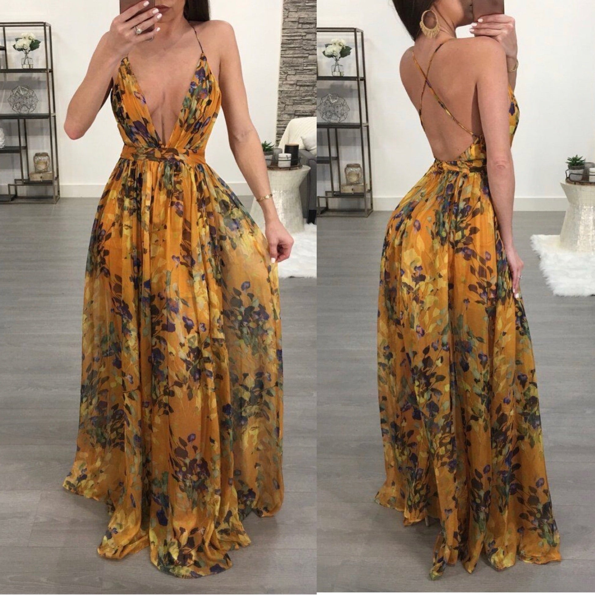 V-Neck Floral print Long Summer Dress. This long-sleeved dress is crafted from lightweight fabric, offering a breezy feel for the perfect summer look. With a V-neck and colorful floral pattern, the dress is sure to bring a touch of style to any occasion.