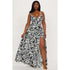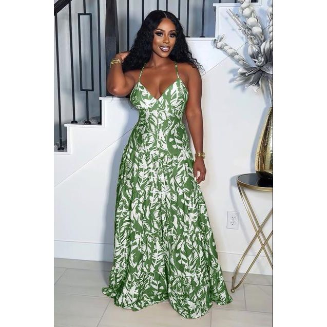 V-Neck Printed Waisted Flare Hem Vacation Dress