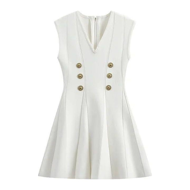 Solid Button Front Sleeveless Shirt Dress