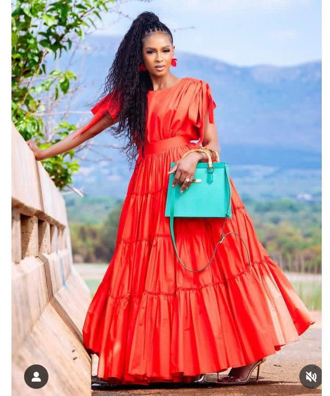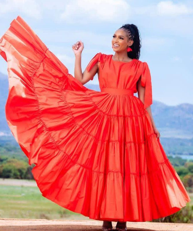 Puff-sleeve A-line Fitted Waist Maxi Dress