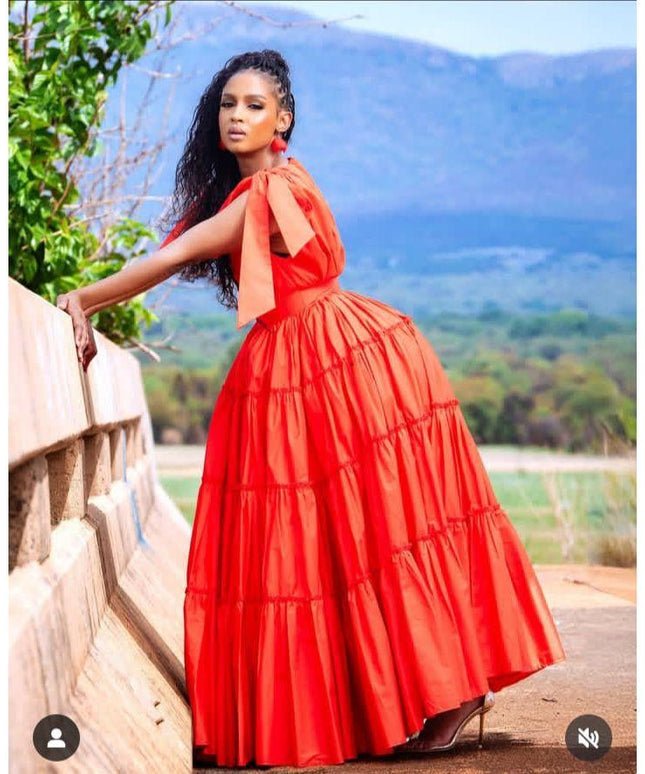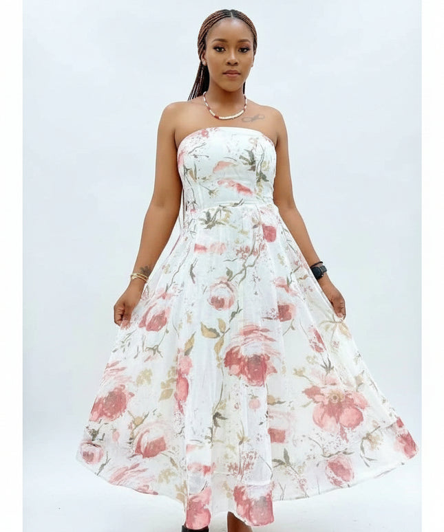 Abstract Print Off-Shoulder Long Dress.
