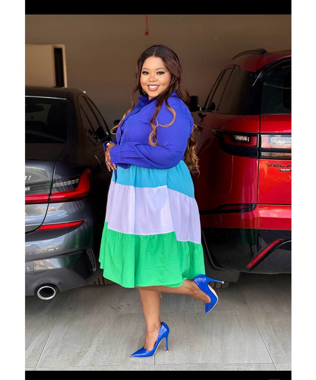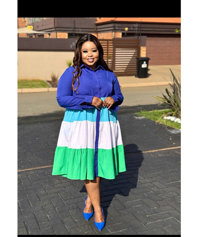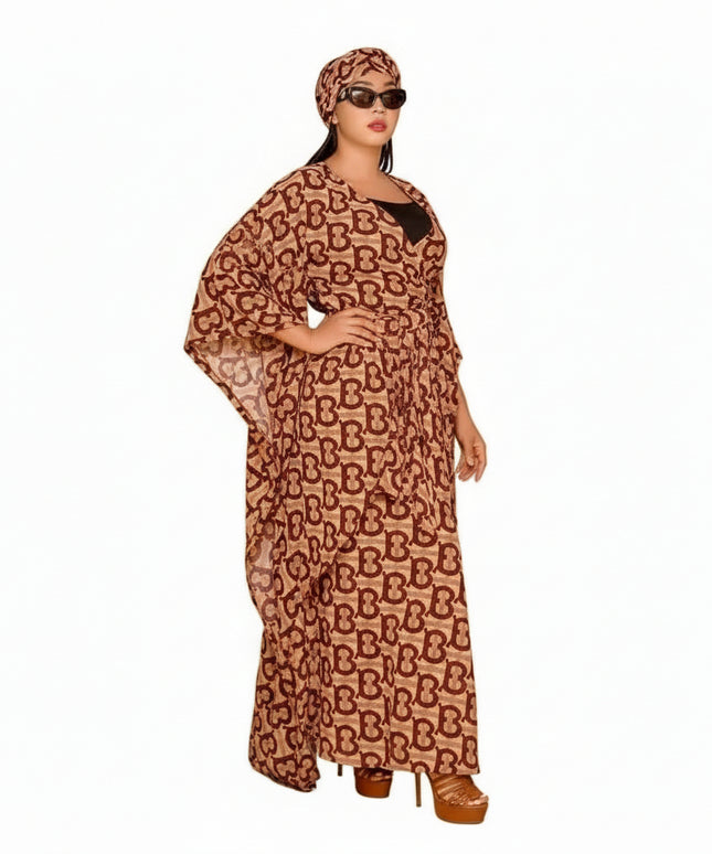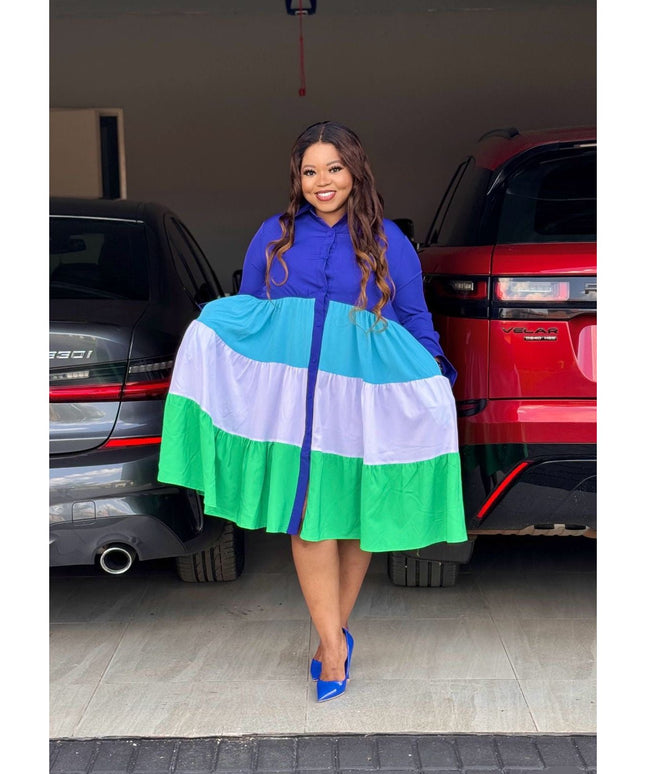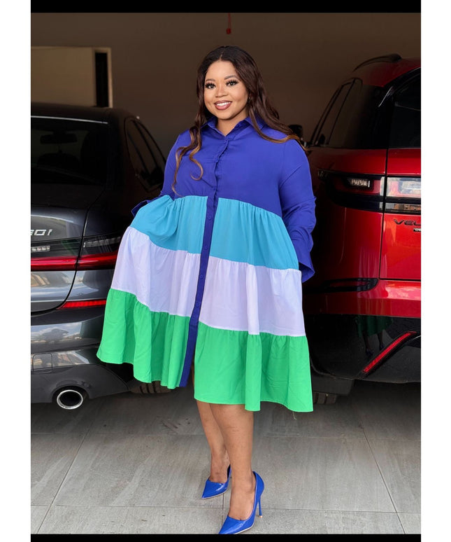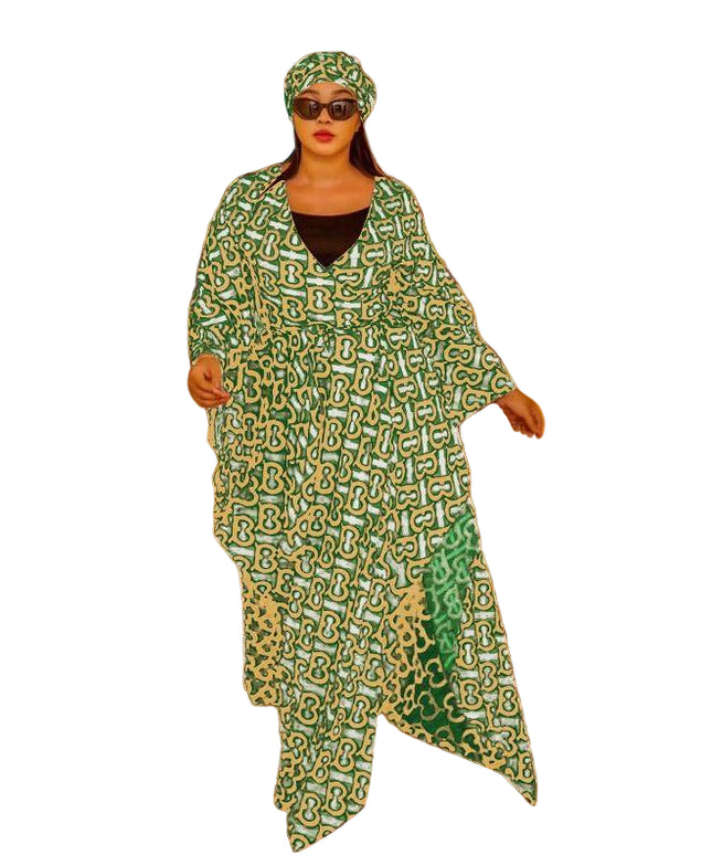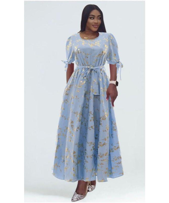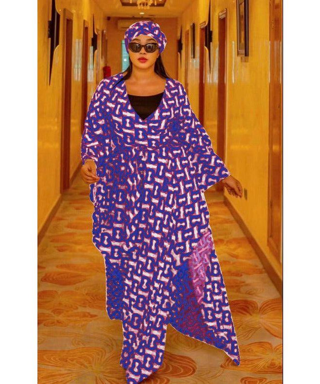 Kaftan African Soft Cotton Blue Printed Loose Dress.