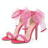 Embellished Ankle Strap Pearl Mesh Bow Heels