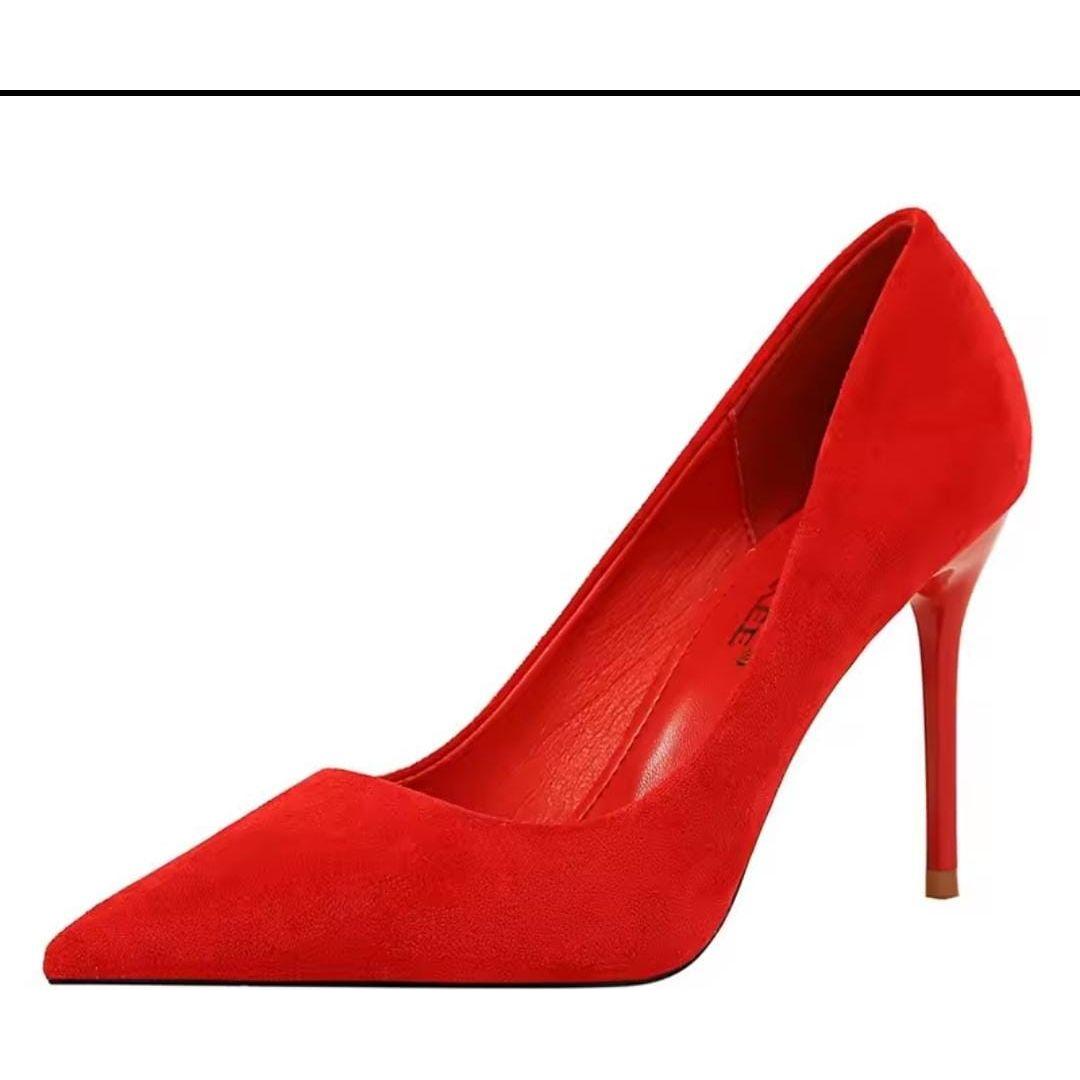 These high heels feature premium red soles and a pointed design, making them a chic and sophisticated option for any occasion. With a sturdy heel and comfortable fit, you'll feel confident and stylish all day long. The perfect addition to any fashion-forward wardrobe.