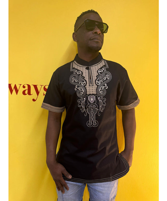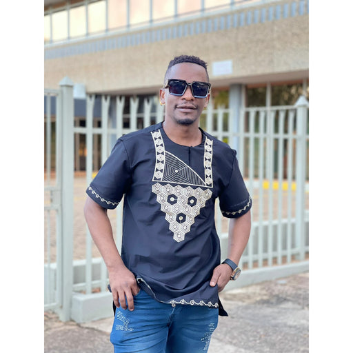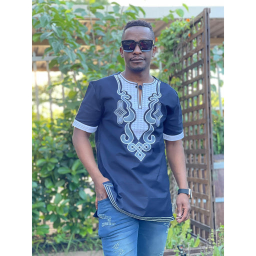 Mens African Vintage Embroidered T-Shirt