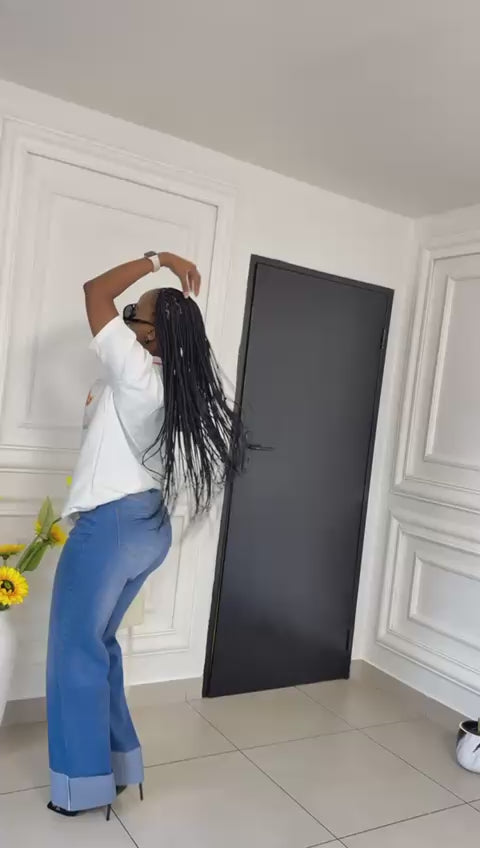 Ladie's Wide Leg Turn Up Denim Trouser