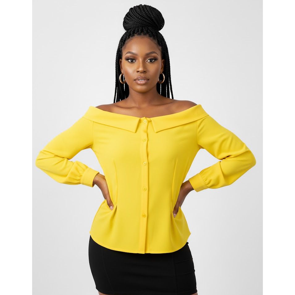 Off-The-Shoulder Puff Sleeve Cinched Waist Blouse