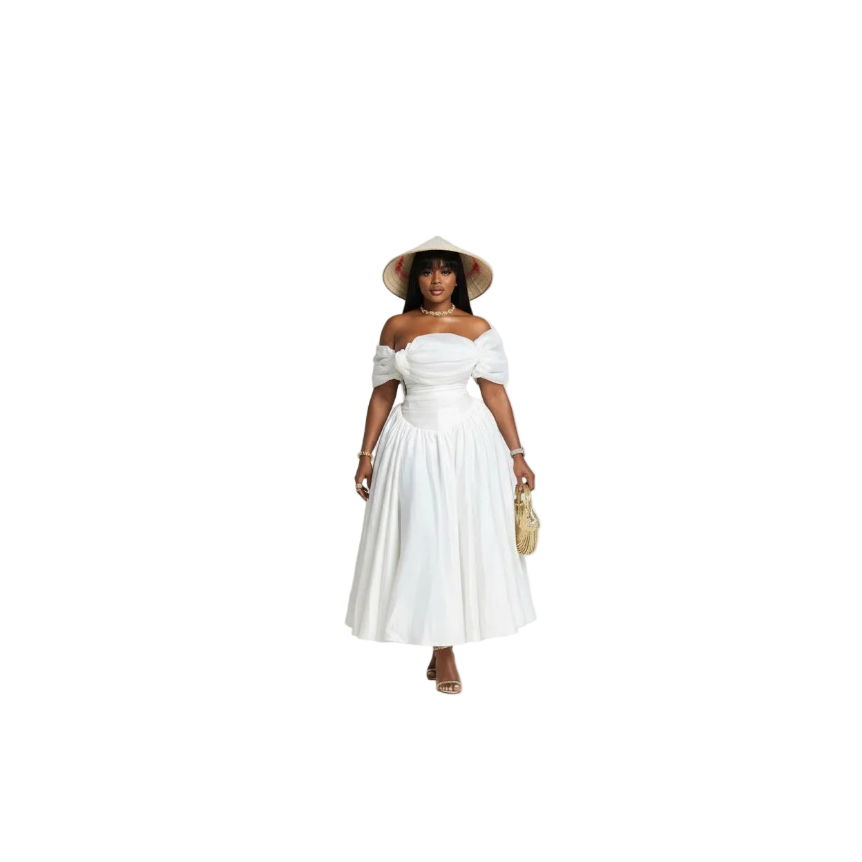 Elevate your wardrobe with this stunning Plus Size Off-Shoulder Satin Ruffle Midi Dress, designed to celebrate your curves with effortless elegance. Crafted from luxurious satin-like fabric that drapes beautifully, this dress features a flattering off-shoulder neckline and romantic puff sleeves that add dimension and charm to your silhouette. The delicate ruffle detailing creates movement and visual interest, while the midi length offers a sophisticated, versatile look perfect for any occasion—from casual outings to special events. Available in a comprehensive range of sizes and multiple colors.