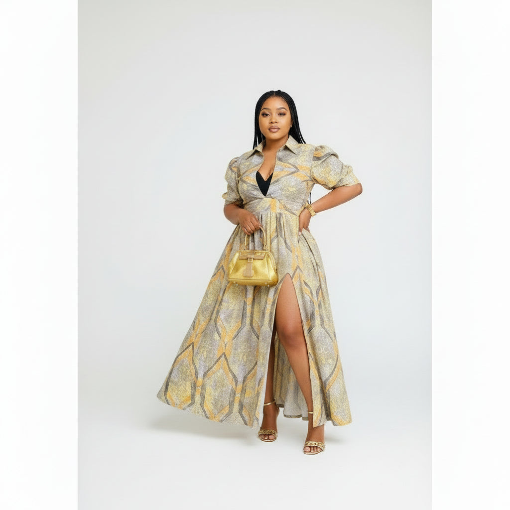 The French Short Sleeve High Slit Maxi Dress is made from high-quality, breathable fabric that is perfect for warm weather. With its elegant design and flowing silhouette, it's the perfect choice for any occasion.