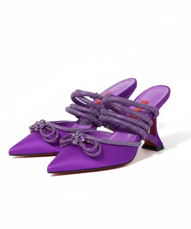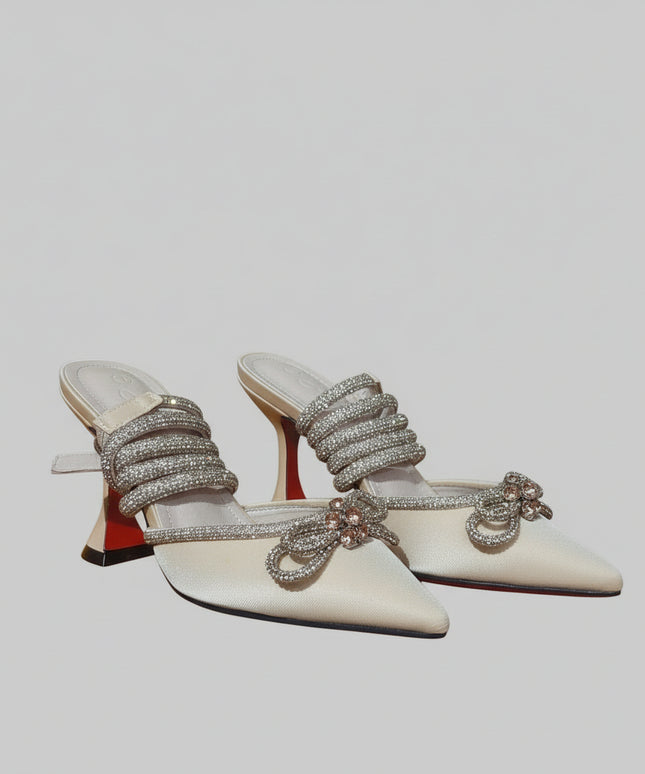 High Heels Diamond Bow Mesh Pointed Shallow Mouth Single Shoes