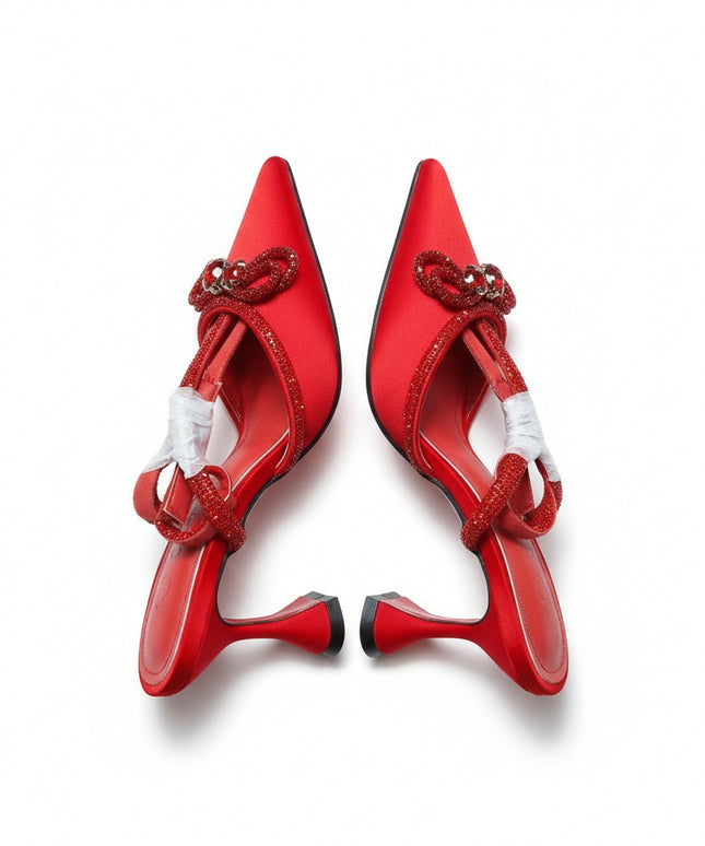 Elegant Black Satin Pointed-Toe Slingback Heels with Bow Detail