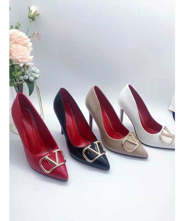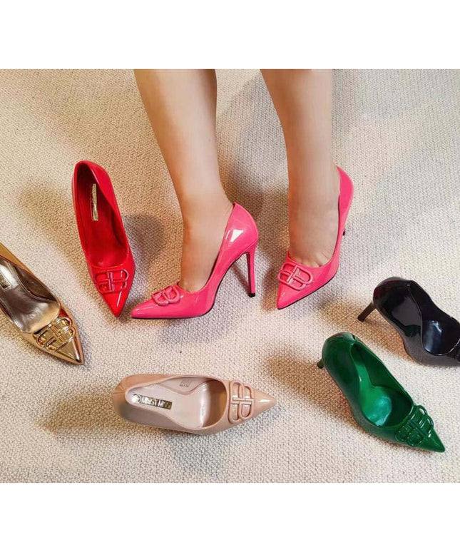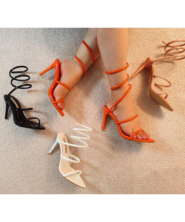 Elegant High-Heeled Glossy Patent Finish Pointed Toe Sandals
