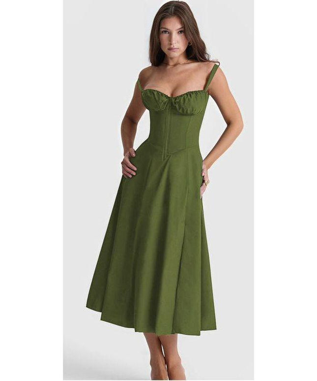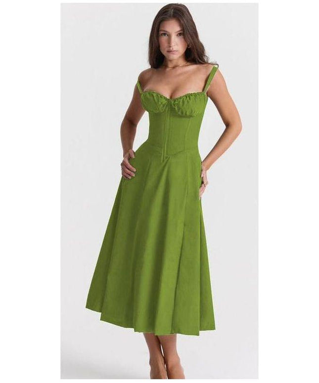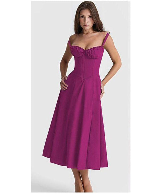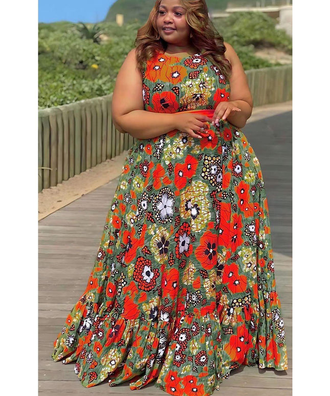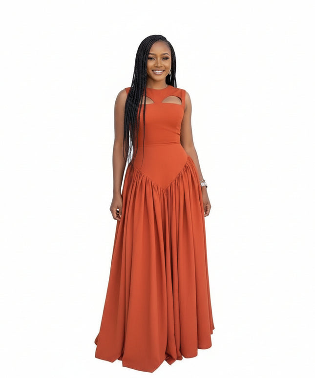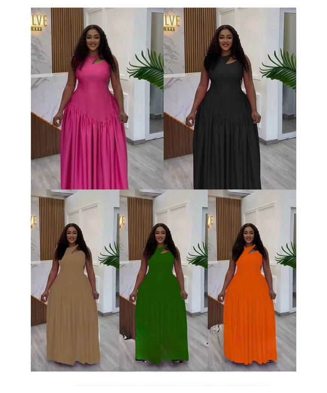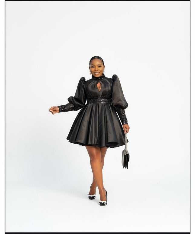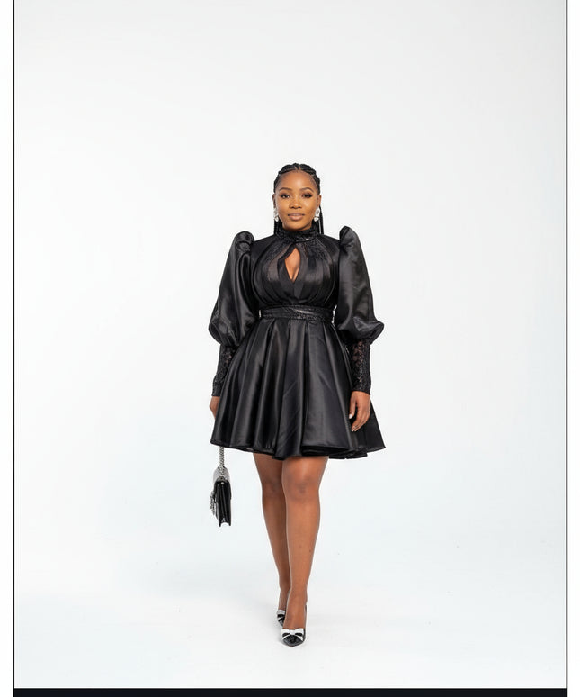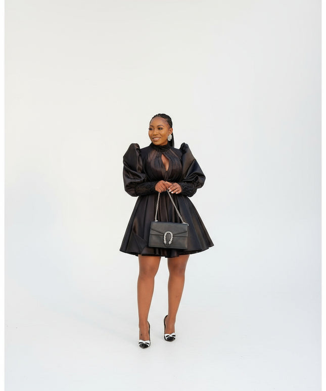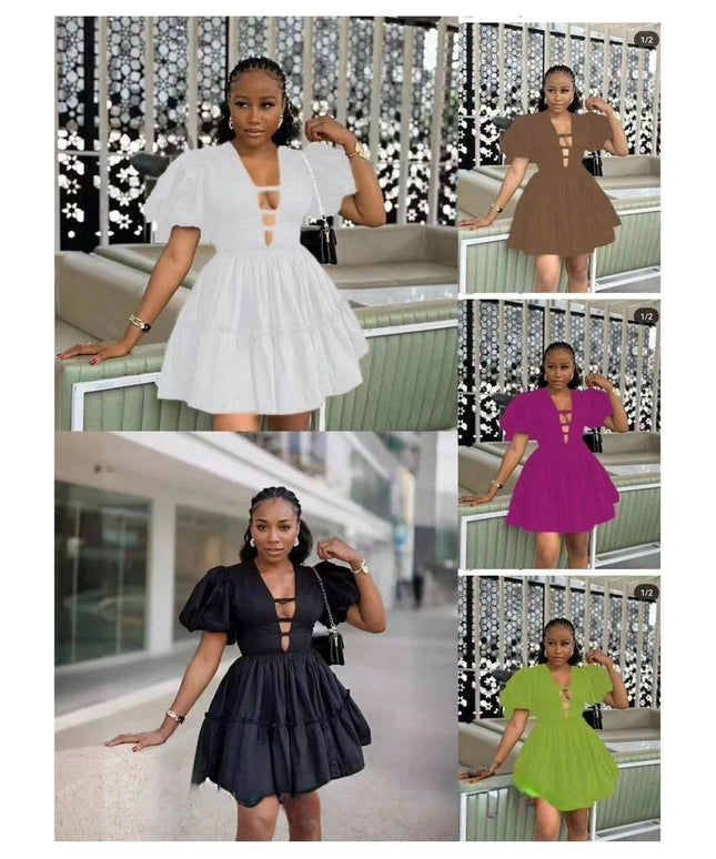 Elegant Plus Size Puffy Sleeve Pleated Hem Dress