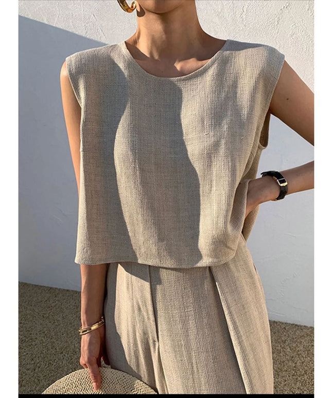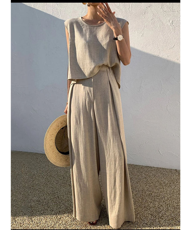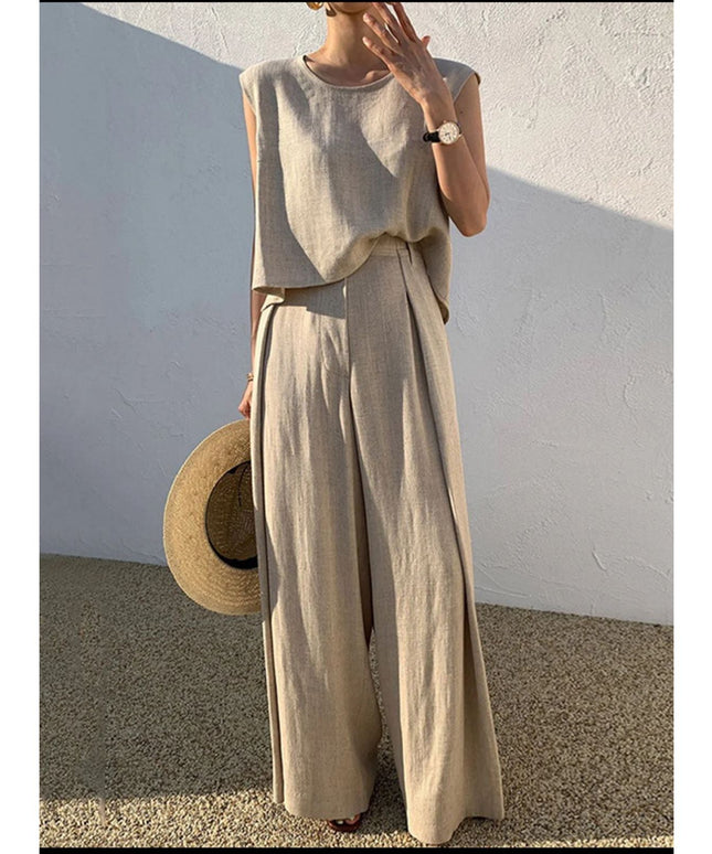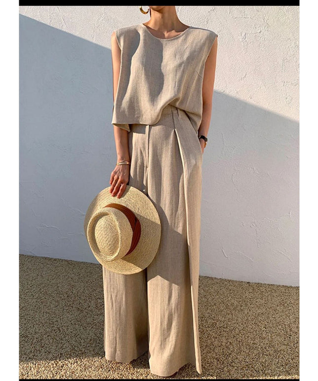 Sleeveless Top and Wide Leg Long Pants 2 Piece Set