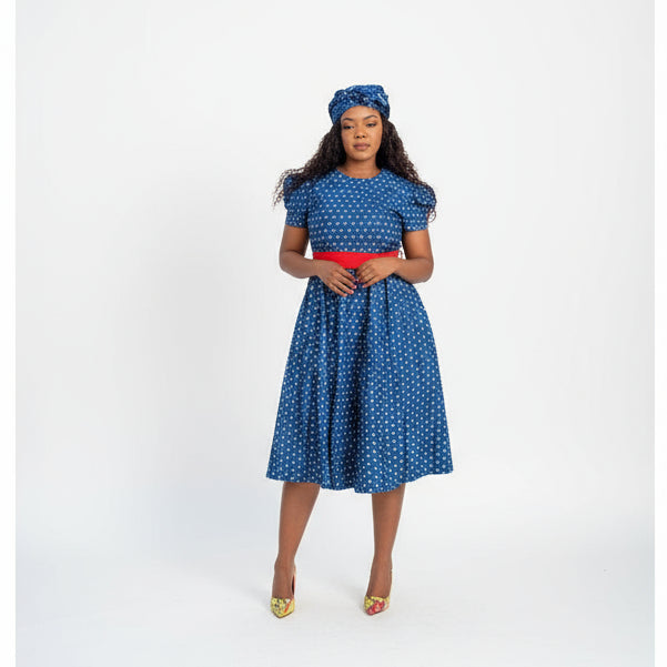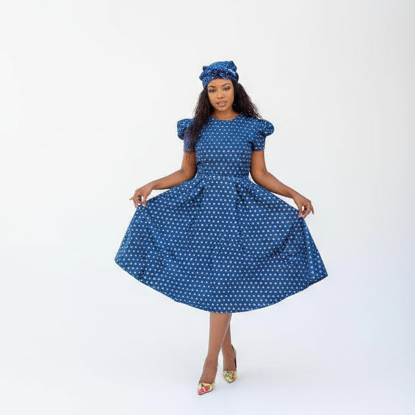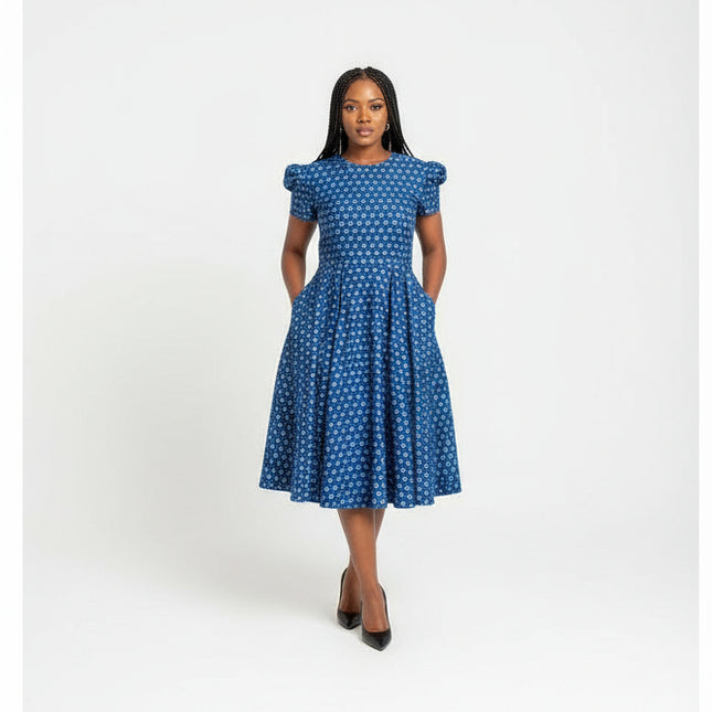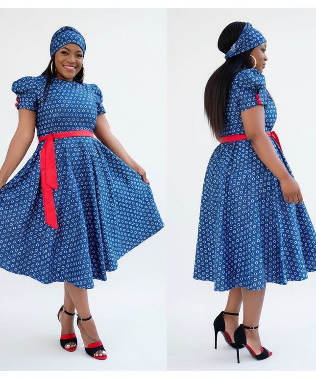 Plus Size Short Sleeve V-Neck Ankara Midi Dress