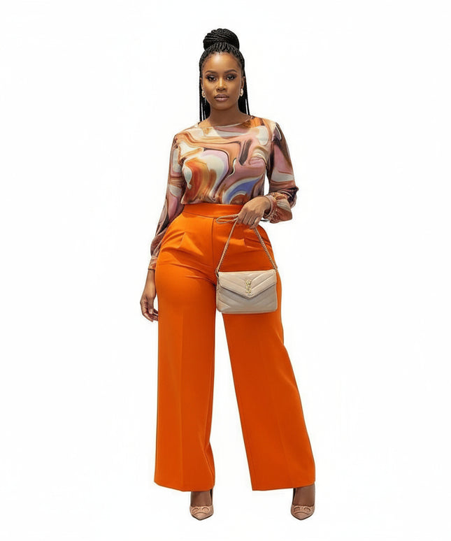 Sleeveless Top and Wide Leg Long Pants 2 Piece Set