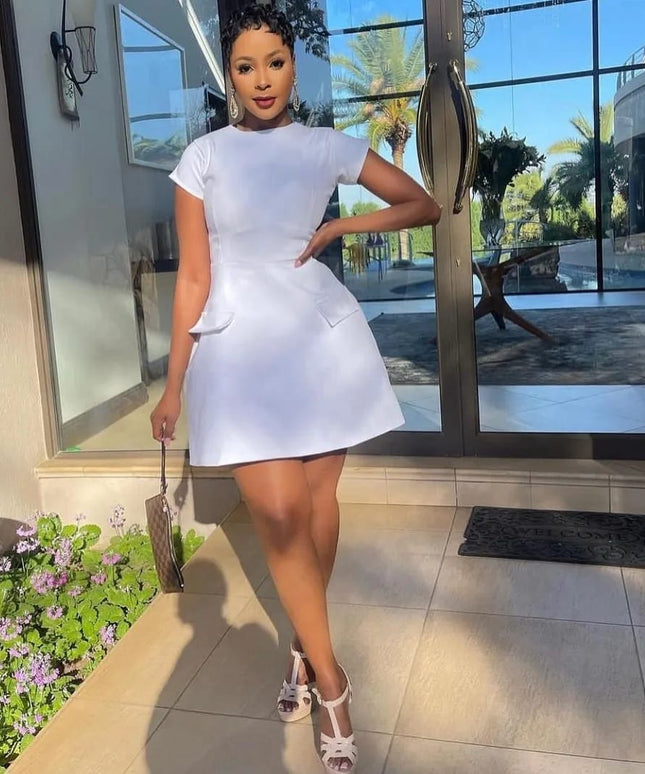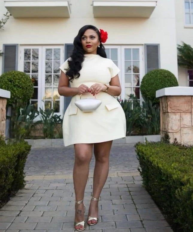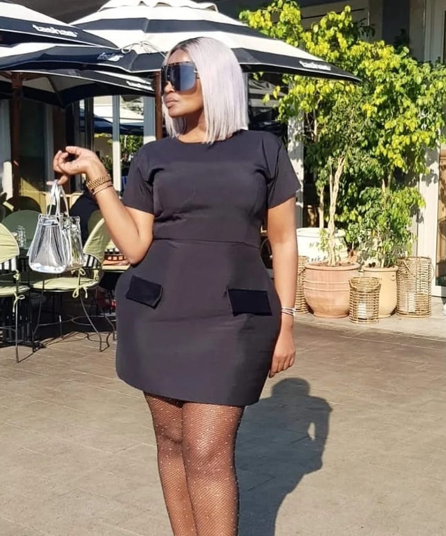 Plus Size Elegant Mini Dress with Flowers Pockets