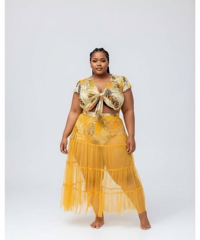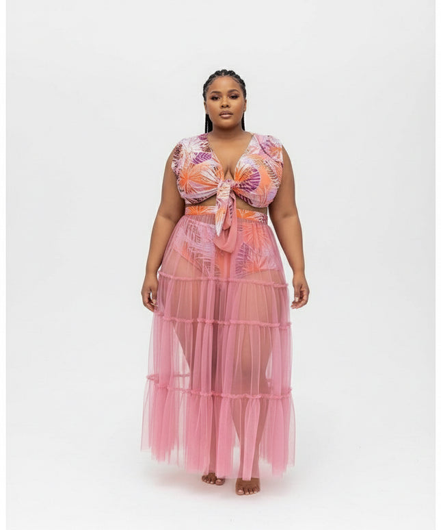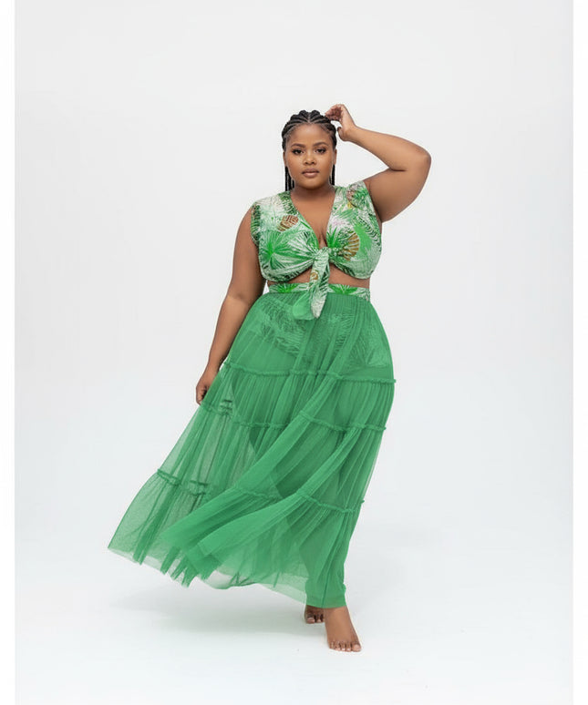 3-Piece Maxi Skirt Cover-Up Tropical Bikini Set