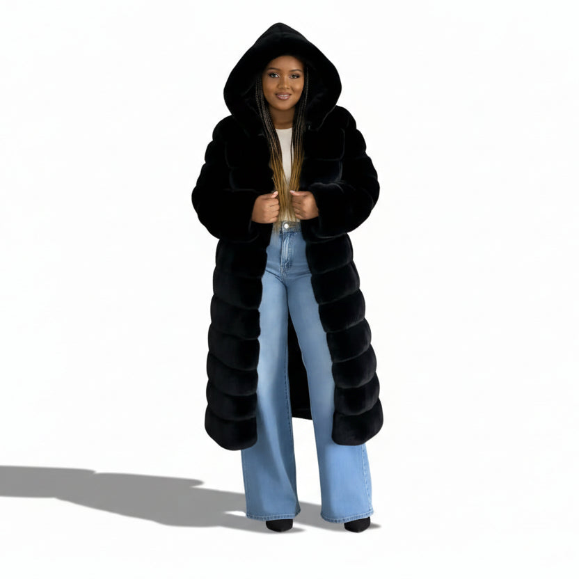 Embrace winter warmth in style with this luxurious plus-size fur coat. Featuring a cozy hood and extended length for full coverage, this statement jacket elevates any cold-weather ensemble. Choose from four versatile colors to match your personal aesthetic. Perfect for those seeking comfort without compromising on elegance.