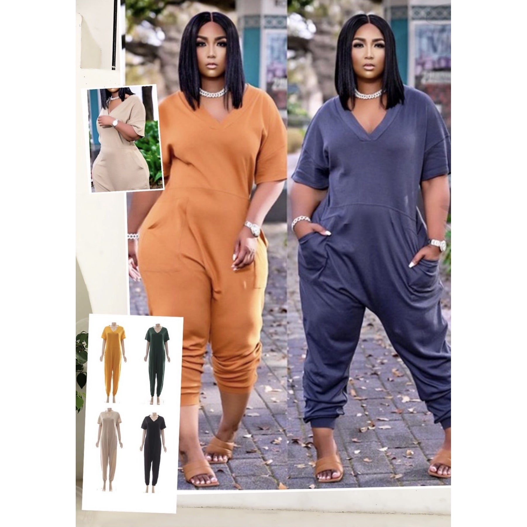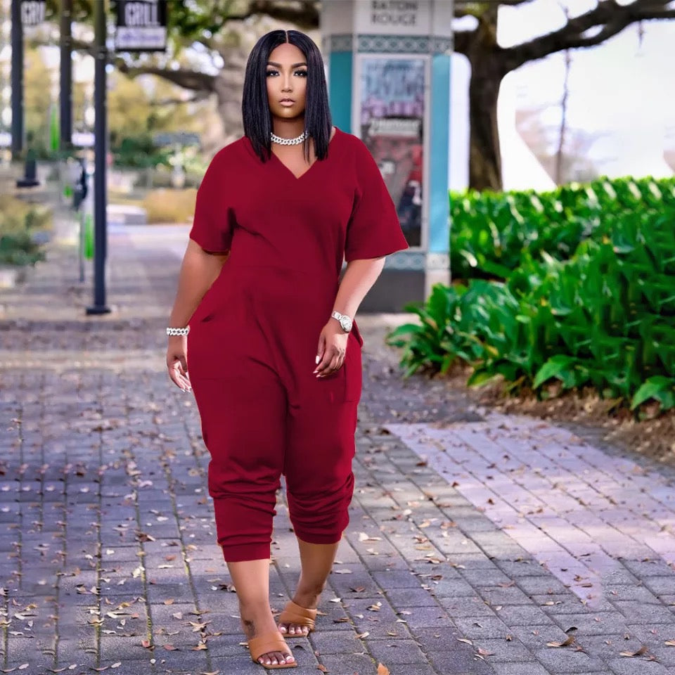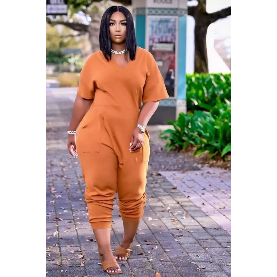 Solid V-neck Chocomist Jumpusits This apparel is crafted with a comfortable v-neck design, allowing for easy everyday wear. The soft, solid color fabric provides versatility to your wardrobe.