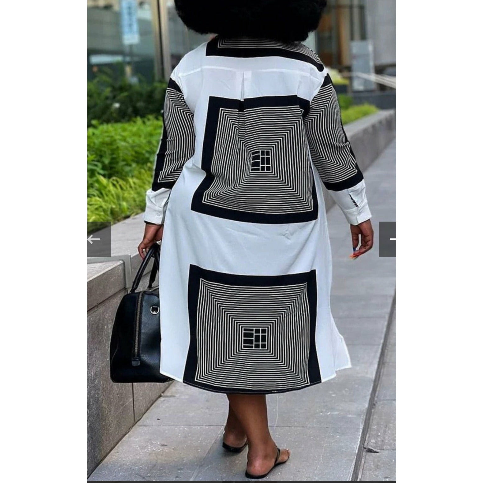 Square Abstract Print Plus-size Shirt Dress This dress features a square abstract print that adds a touch of sophistication to your wardrobe. Plus-size options are available to ensure a perfect, comfortable fit for all body types.