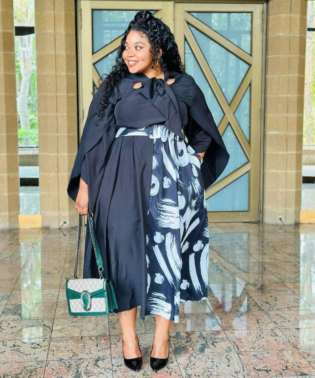 Button Detailed Plus-Size Ankara Dress