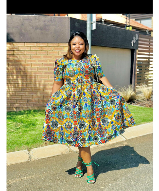 Elegant African Rockabilly Ankara Dress.