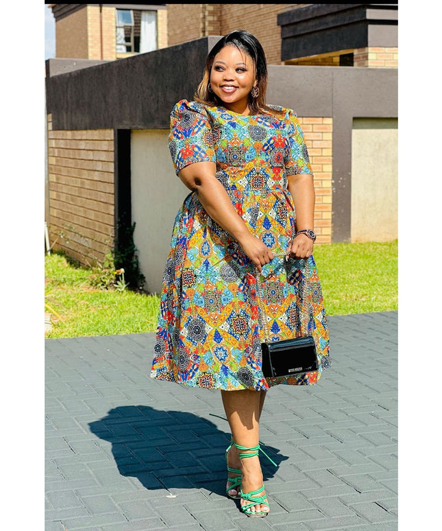 African Print Pleated Midi Dress.