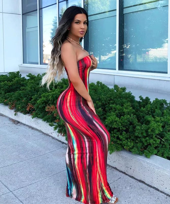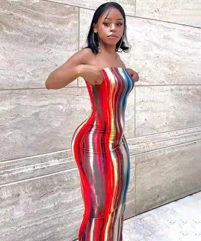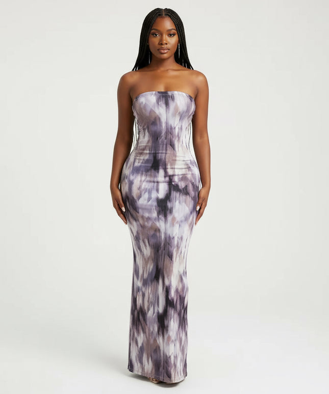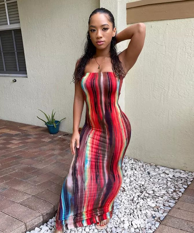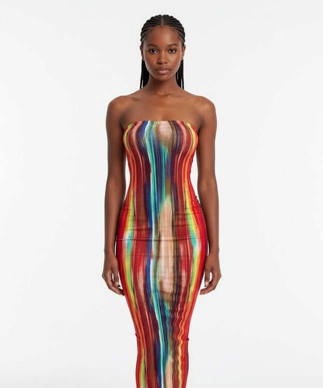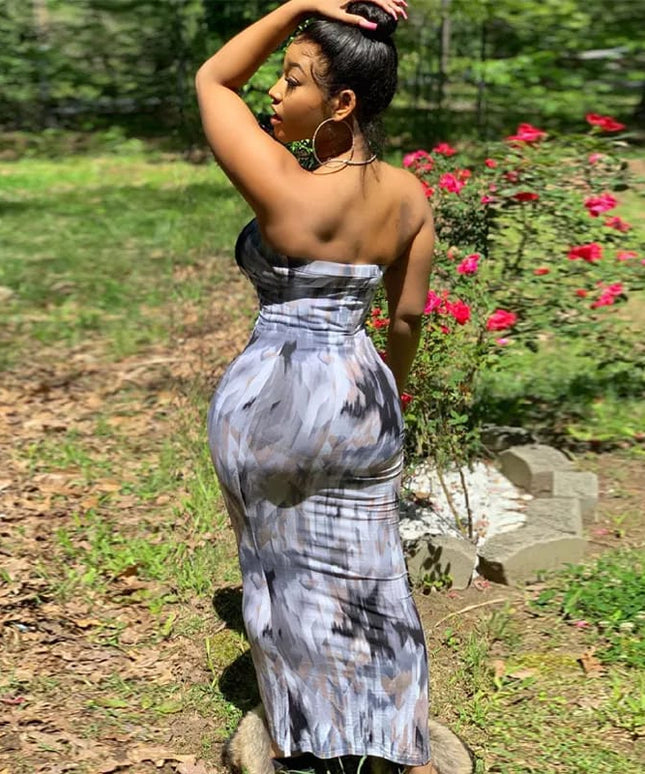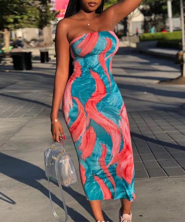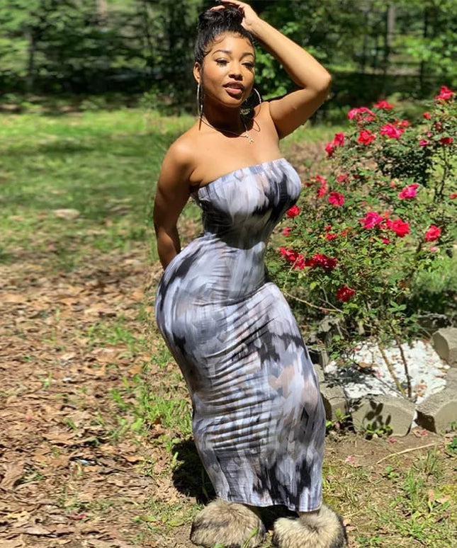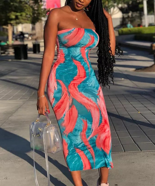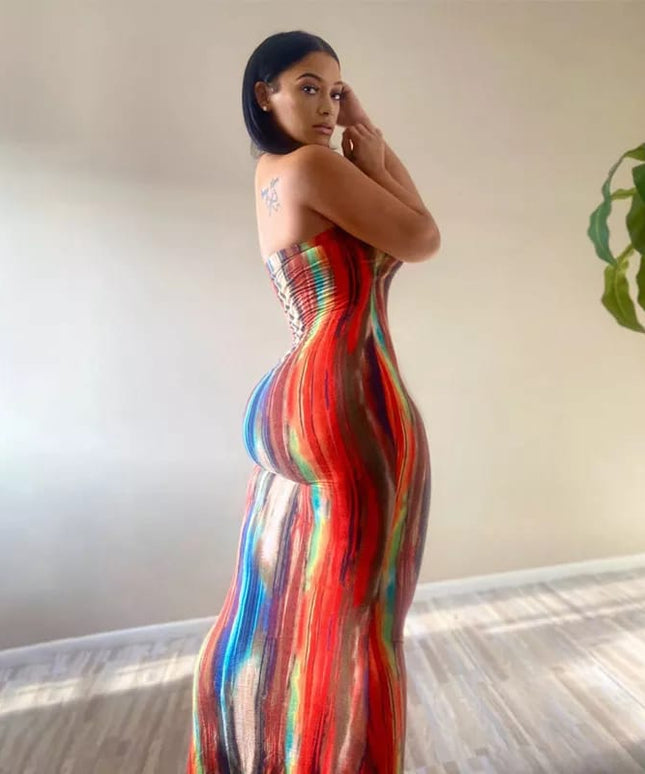 Tie Dye Print Strapless Boob Tube Dress