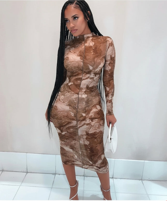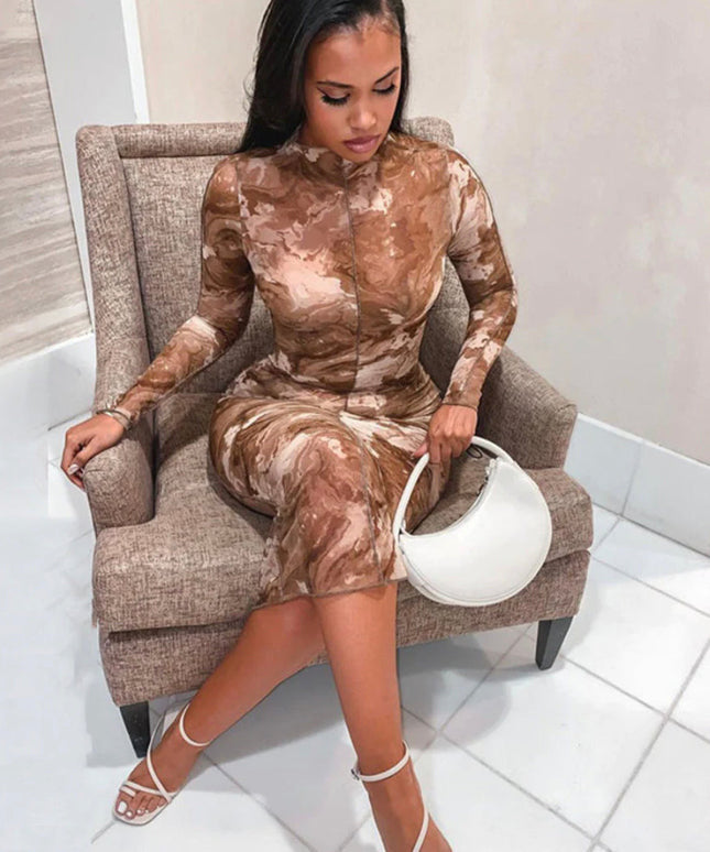 Long Sleeve Printed Bodycon Dress