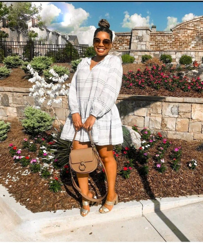 Lantern Sleeves Collar Shirt Dress