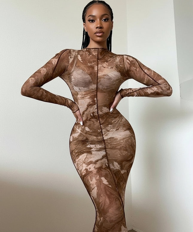 Mesh see-through bodycon dress