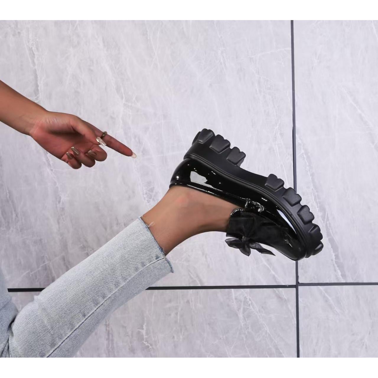 Step into bold elegance with the Black Bowknot Bulky Platform Oxford Glossy Shoes. These statement shoes combine a glossy finish with a chunky platform sole, offering both height and comfort. The delicate bowknot detail adds a touch of femininity to the sturdy Oxford design, making them perfect for elevating any outfit. Whether for work or a night out, these shoes deliver a confident, fashionable edge that stands out effortlessly. Durable and stylish, they are a must-have for those who want to make a lasting impression.