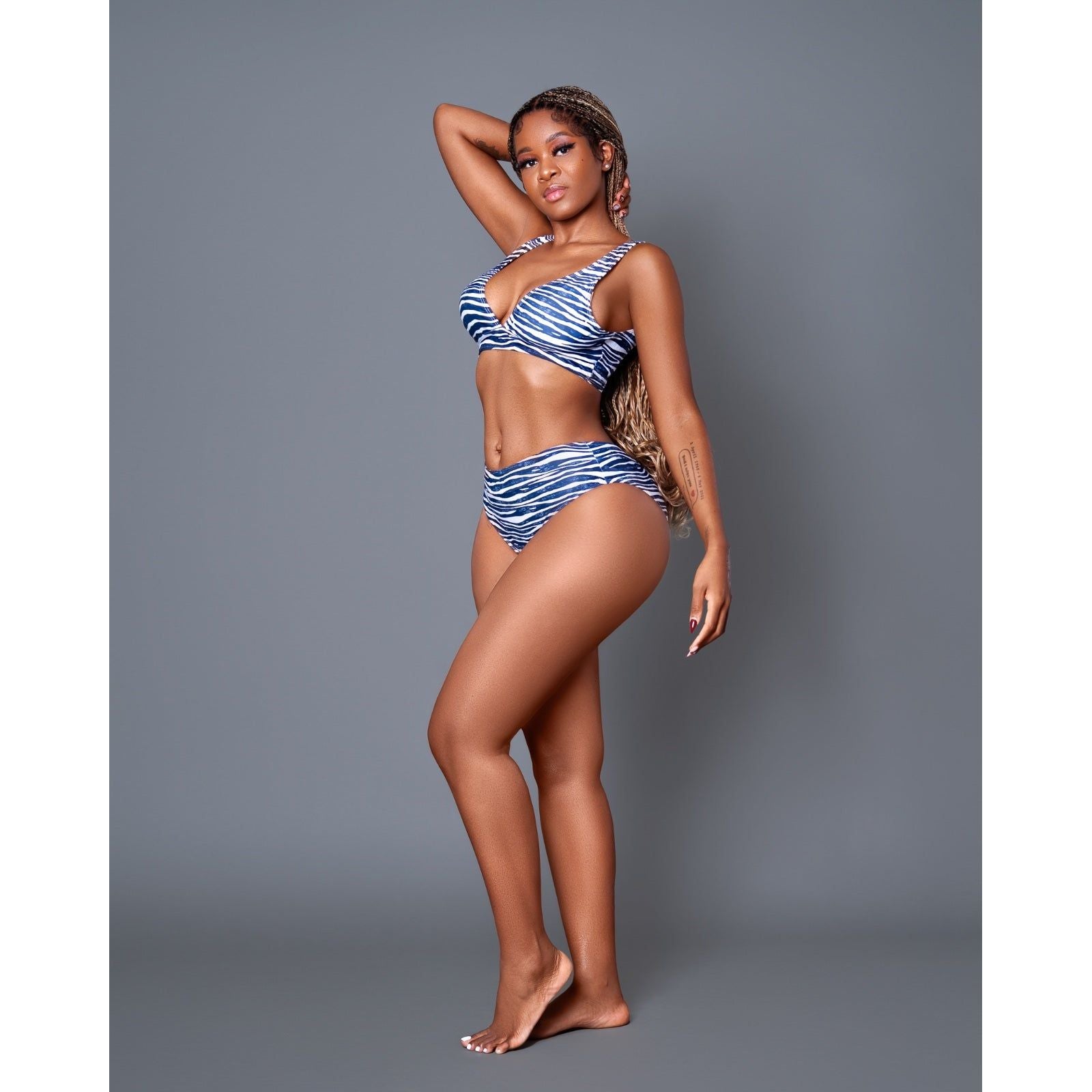 Top Zebra Printed High Waist Bikini Swimwear Tummy Control Swimsuit. Stay in control in this fashionable bikini set. Featuring a high waist design and zebra print pattern, this swimsuit not only flatters your figure, but also offers tummy control for a confident poolside look.