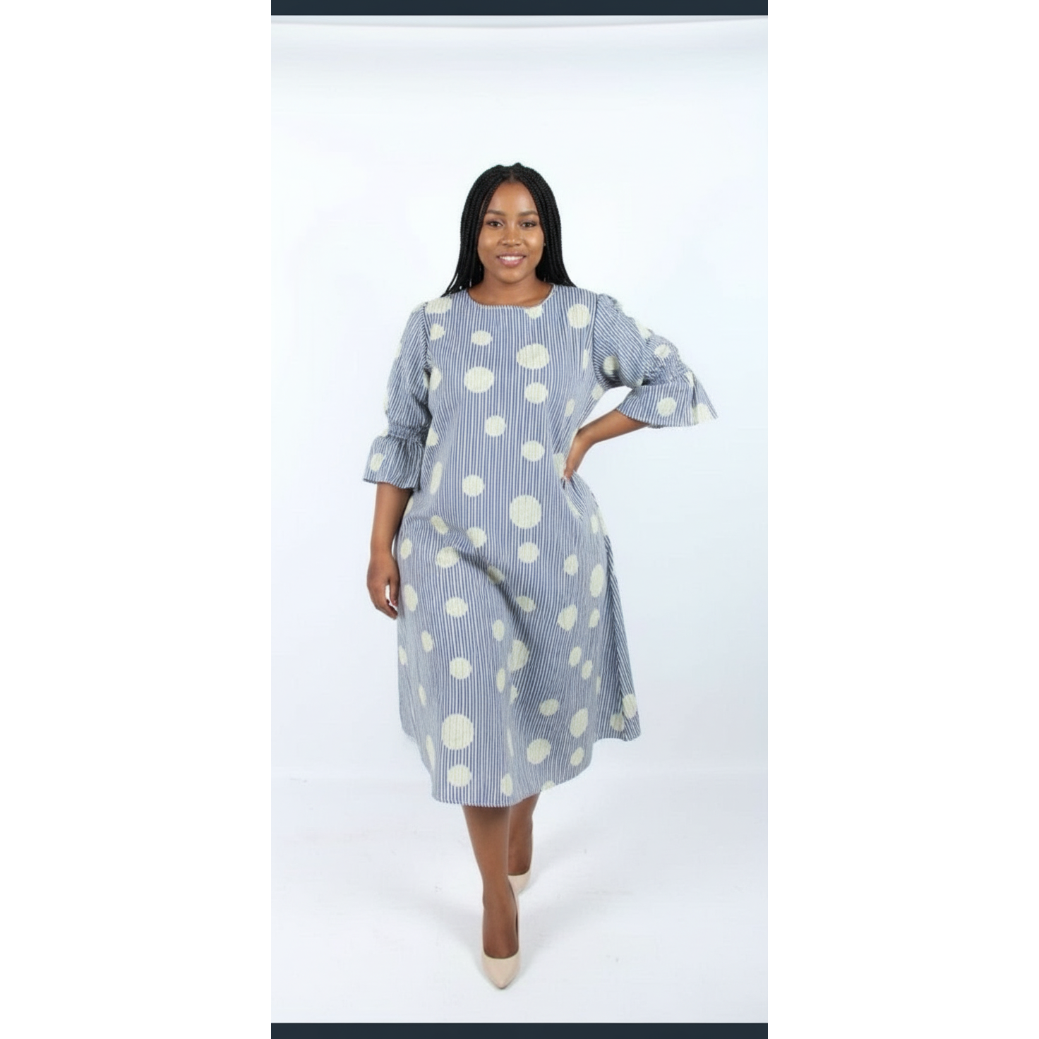Polka Dots Summer Ankara. The Ankara fabric is comfortable to the touch and lightweight, making it ideal for warm weather wear. It's designed with a timeless aesthetic that makes it easy to mix and match with a variety of looks.