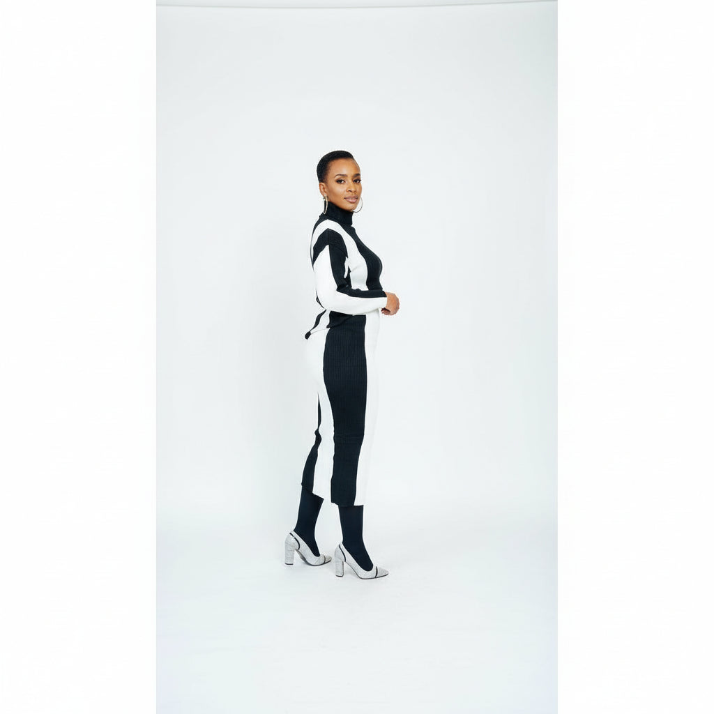 The 2 Tone Turtleneck Drop Shoulder Sweater & Knit Midi Skirt is not just a stylish and versatile addition to your wardrobe, it's also a smart investment in quality. The high-quality materials used in this set are designed to last, making it a long-lasting staple for your wardrobe. Whether you're attending a business meeting or a casual outing, this set will keep you looking and feeling confident and put-together.![]()