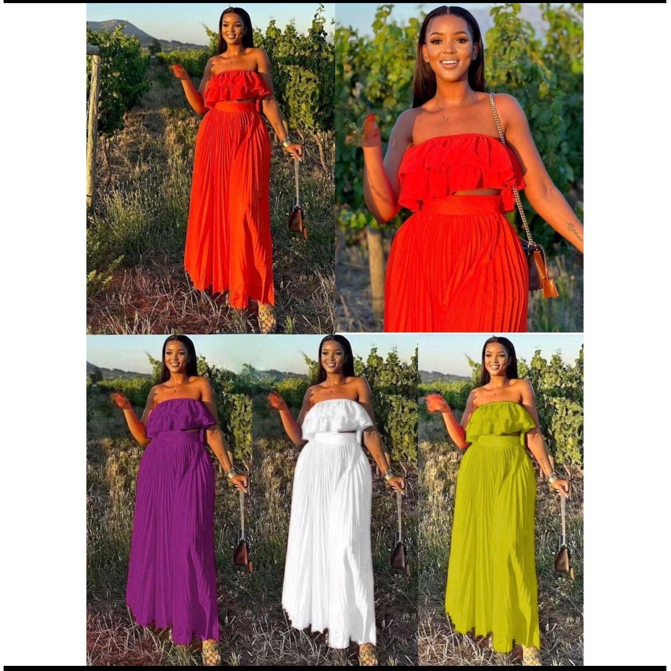 Elegant Ruffled Top and Pleated Skirt