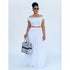 Off Shoulder Front Button Top and Skirt. Designed for style and comfort, this off shoulder top and skirt offer a modern yet timeless look perfect for any occasion. The front buttons add a touch of sophistication while the quality materials ensure durability and a flattering fit.