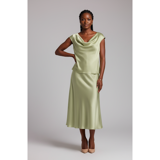 Solid Loose Collar Blouse And Fish Tail Midi Skirt 2pcs Set