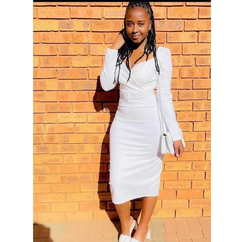 V Neck Long Sleeve Pencil Dress This dress features a flattering v-neck design and long sleeves, making it a versatile option for any occasion. With its form-fitting silhouette, it will accentuate your curves and make you feel confident and stylish. Plus, its high-quality fabric ensures long-lasting wear and a comfortable fit.