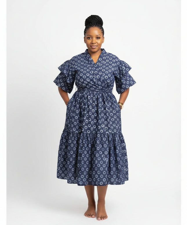 Asymmetric Cocktail Sleeve Sequin Ruffle Embroidery Midi Dress.