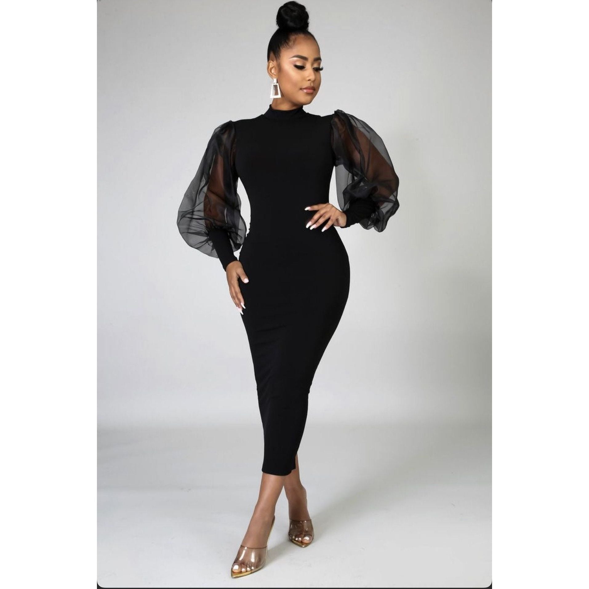 Bodycon Mesh Long Lantern Sleeves Dress