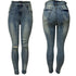 High Waisted blue ripped high Waisted skinny jeans.