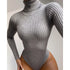 Stay warm and modern with this Ribbed Knit Bodysuit Turtleneck. This fashionable piece is made of knitted fabric, providing a cozy turtleneck fit with a fashionable vibrancy. Perfect for the cooler months.