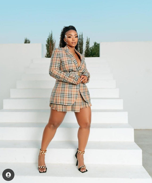 Plaid Mini Skirt and Blazer Set