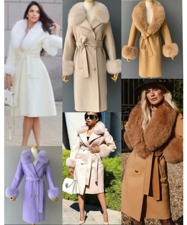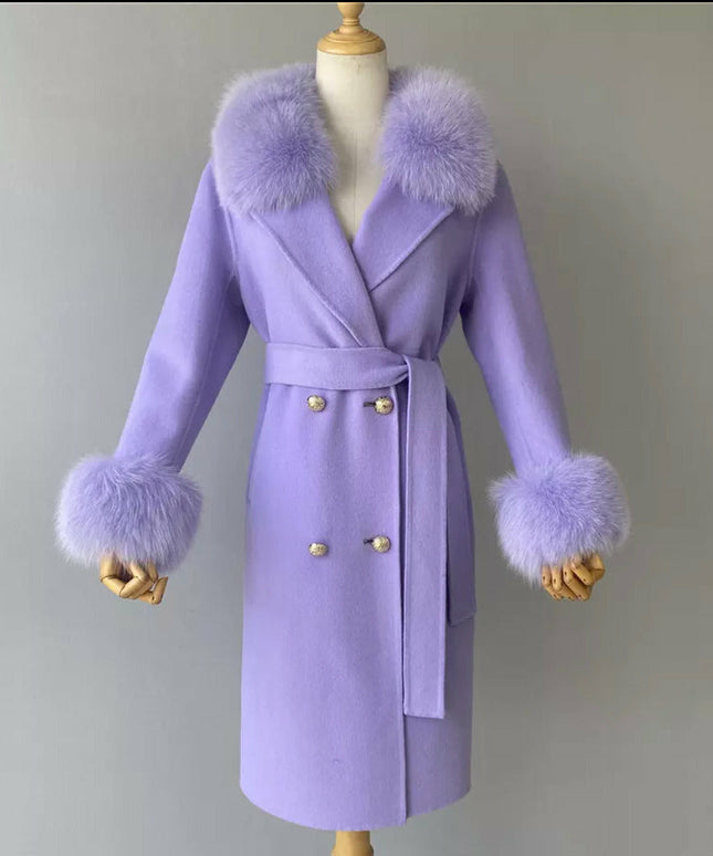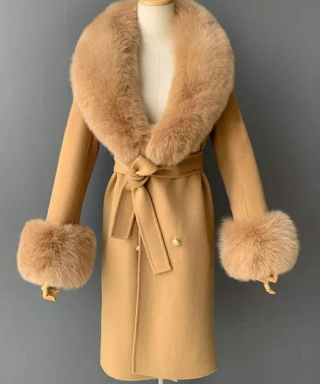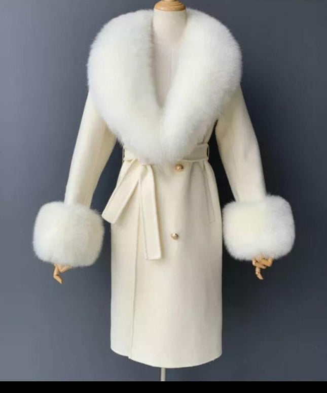 Fox Fur Collar Woolen Jacket Long Overcoat