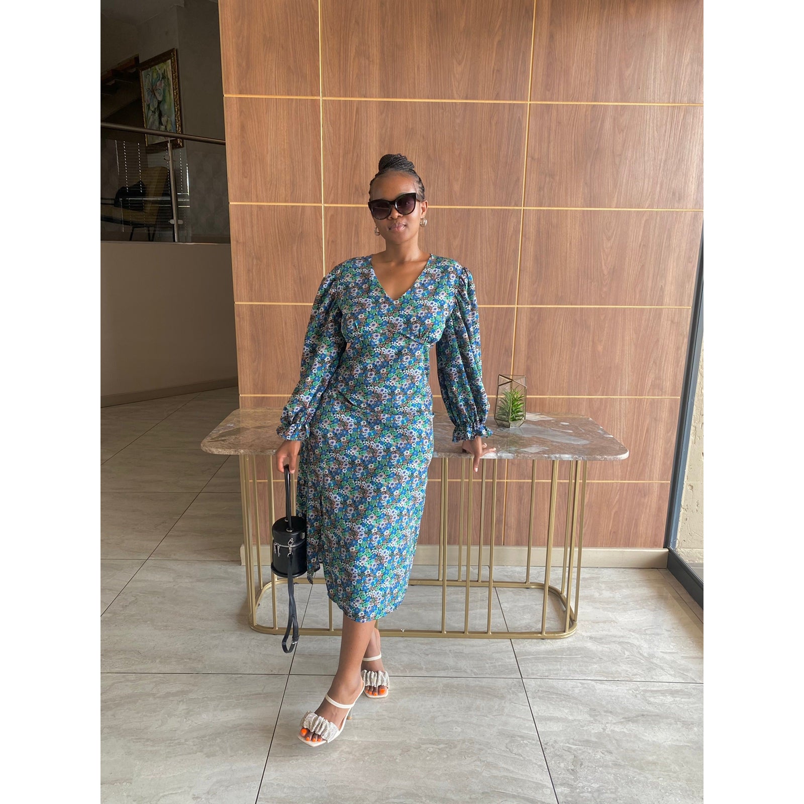 Floral V-Neck Backless Dress